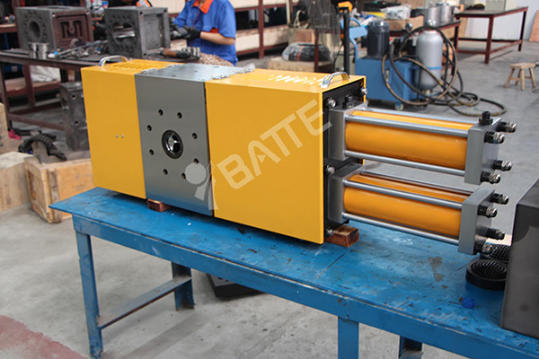 板式連續換網(wǎng)器與板式快速換網(wǎng)器,無(wú)論從外形還是結構來(lái)看都極為相似,也是單板雙工位,不同的是板式連續換網(wǎng)器增加了引料排氣功能,換網(wǎng)時(shí)料壓波動(dòng)小、不會(huì )出現斷流。因為這些特點(diǎn),板式連續換網(wǎng)器在發(fā)泡制品、流延膜和造粒生產(chǎn)線(xiàn)上應用更為常見(jiàn)。